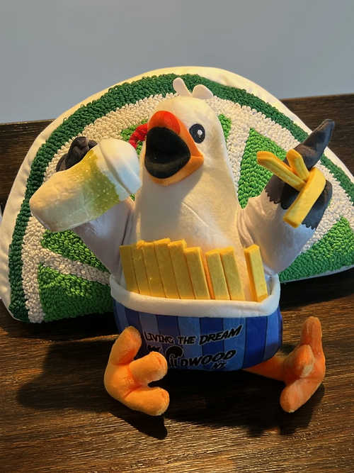 Living the Dream in a bucket of French Fries and Drinking a Lime Ricky, Ricky the Seagull is having a great day. All of our plushies come with a Free $5 Play Card for the games at Lime Ricky. Shipping and handling is $10. Free Shipping on orders over $100. Video is AI generated. Products don't actually move.